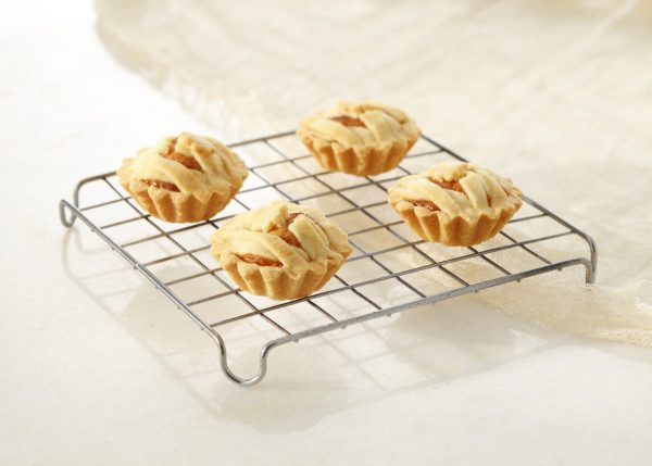 Massa crocante com recheio cremoso de amêndoas e damascos.