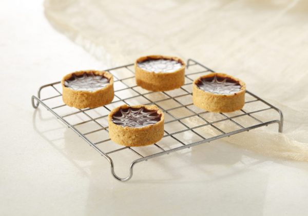 Massa crocante de avelã com recheio de ganache de chocolate meio amargo.